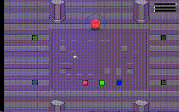 My idea was that instead of having an unusual sword-substitute, the character’s weapon would be the ability to change the color of the scene. Each boss would have a magic color which would inflict damage, so once the player figured out the correct color combination, the boss would take damage and the magic color would change.